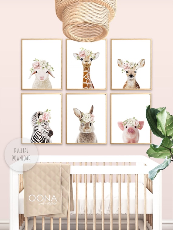 Printable Flower Crown Baby Animal Prints Woodland Nursery Etsy